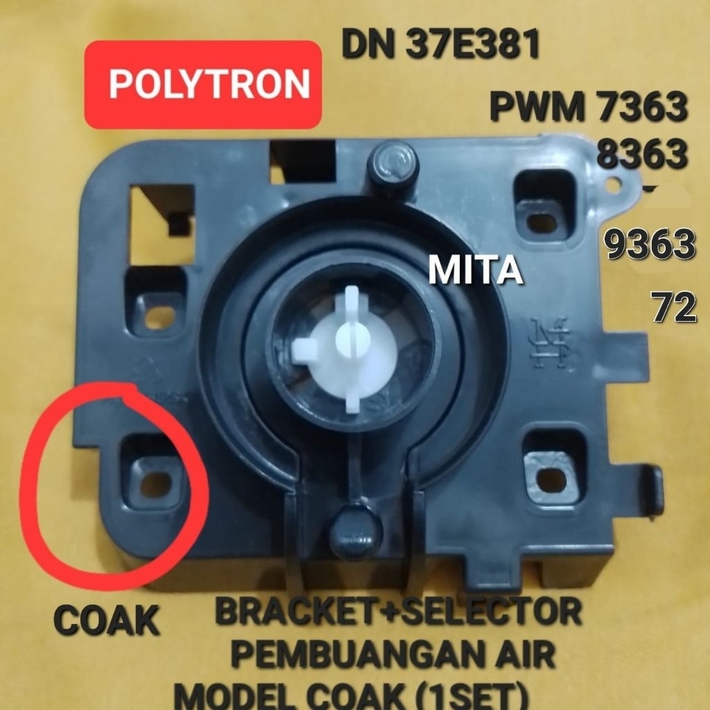 1SET BRACKET Dan Selektor Pembuagan Air Mesin Cuci POLYTRON 2 tabung, COAK (1SET)