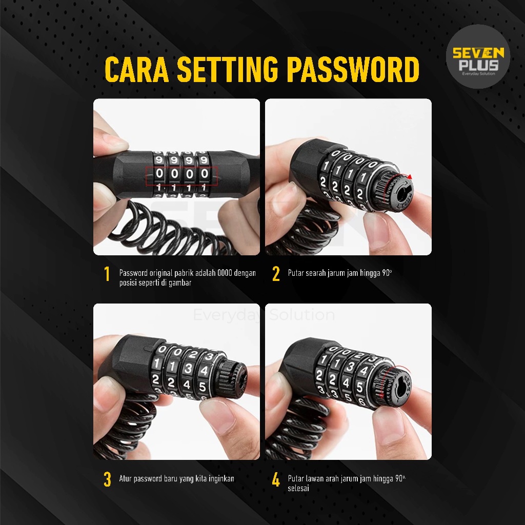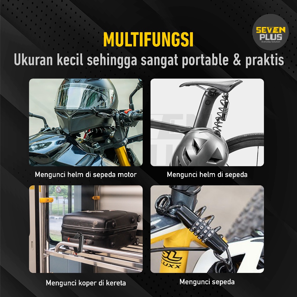 SevenPlus Gembok Sepeda Anti Theft Portable - Bicycle Lock Passcode Kombinasi 4 angka Cable Lock 4 Digit kunci gembok se