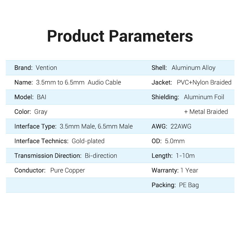 Vention BAI Kabel Audio 6.5mm to Aux 3.5mm Nylon Braided Pure Hifi