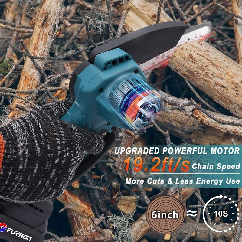 FUYAON Chainsaw 4 inch/6 inch/8 inch Cordless Gergaji Pemotong Kayu Gergaji Listrik 2 Baterai Handheld Chain Saw Gergaji