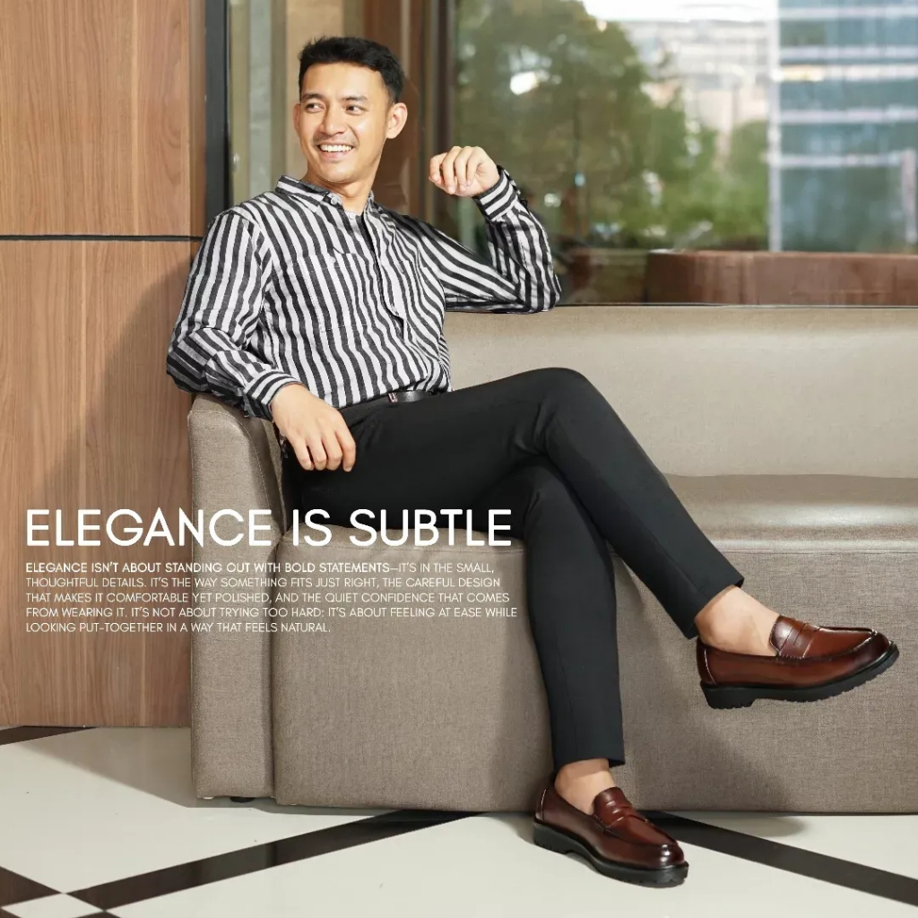 KARN BLACK ORIGINAL x KENZIOS Sepatu Kulit Sapi Asli Pria Loafers Hitam Formal Kerja Kantor Slip On Docmart Slop Resmi