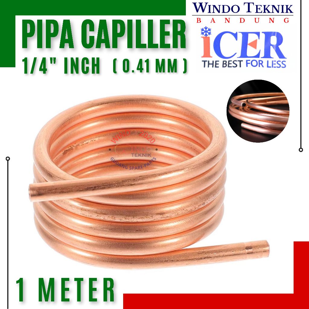 PIPA TEMBAGA SINGLE 1/4" INCI TEBAL PER 1 METER | PIPA CAPILER 1 / 4 INCH UNTUK KULKAS / FREEZER COOPER TUBE SIZE 1/4" |
