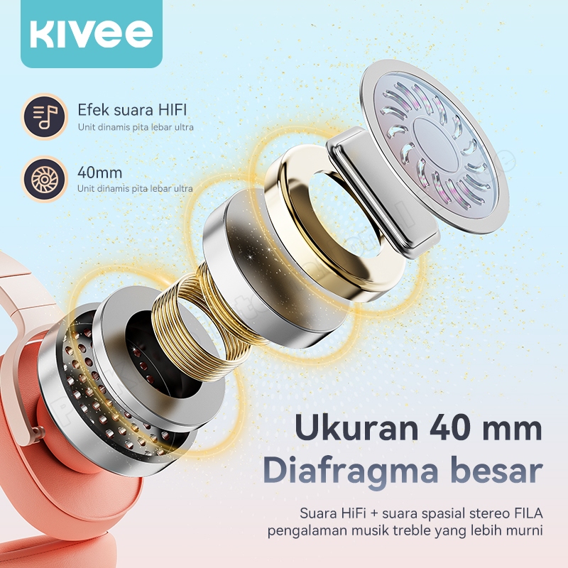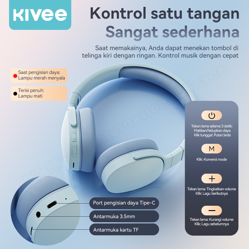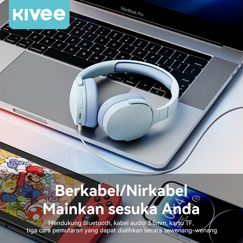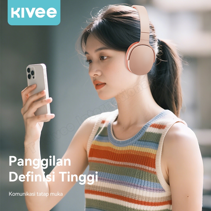 KIVEE Headphone Wireless Bluetooth KV-TW144 Black Headset Music Gaming HIFI 9D Full Bass Original