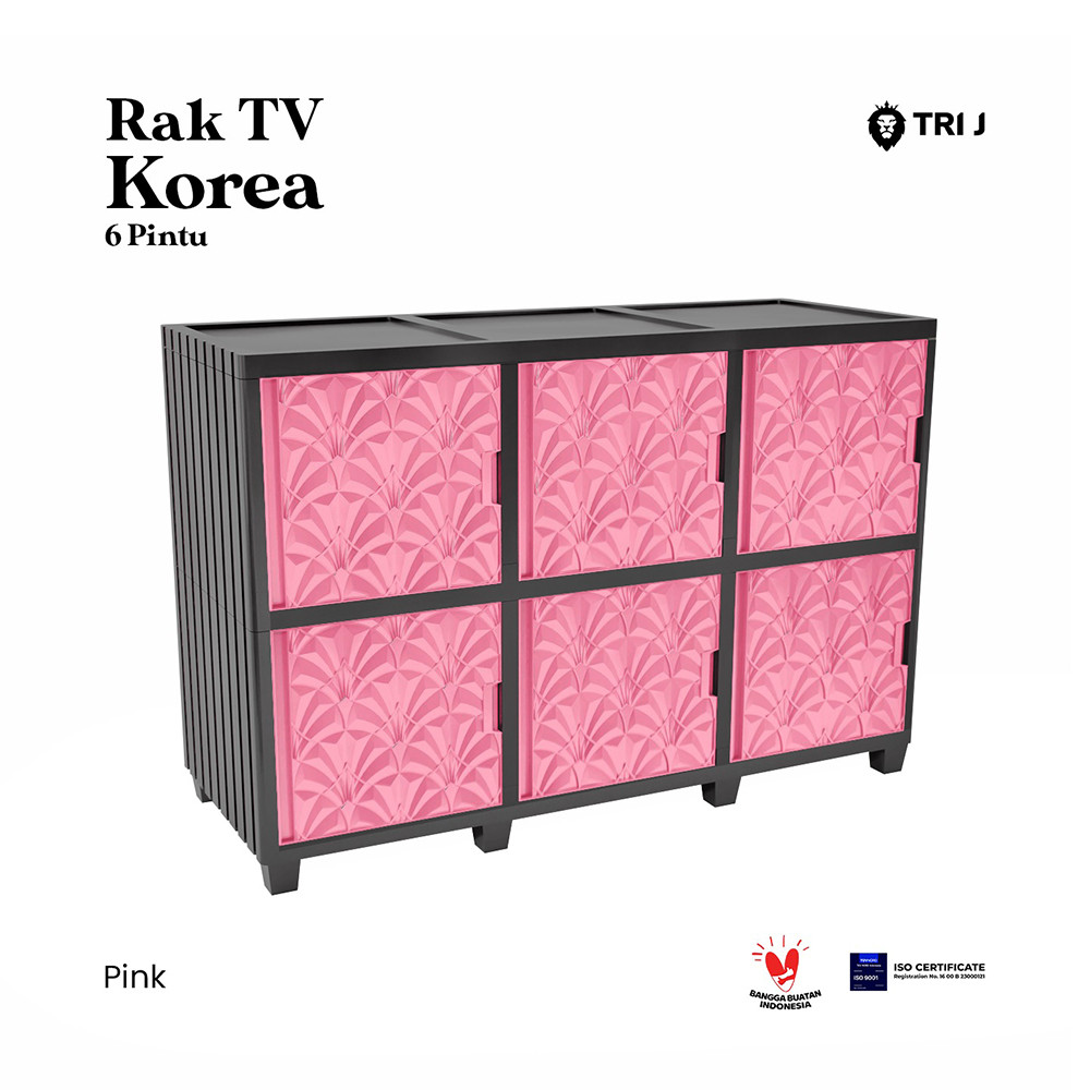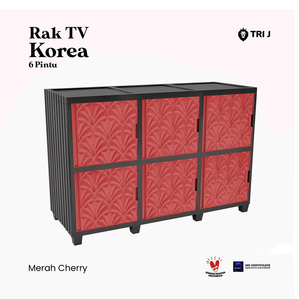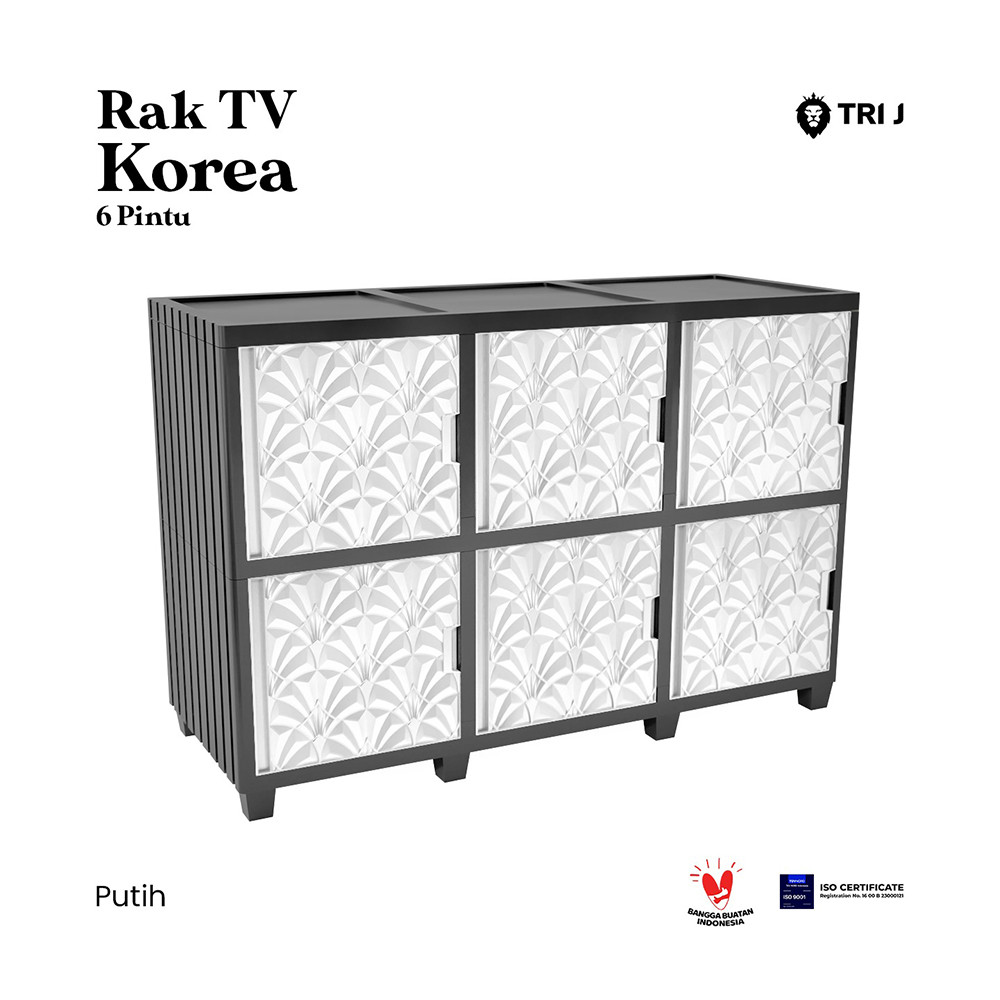 TRI J Lemari TV 6 Pintu Plastik Modern Minimalis Rak Susun Televisi Serbaguna
