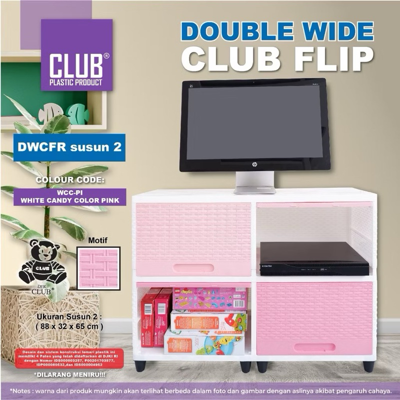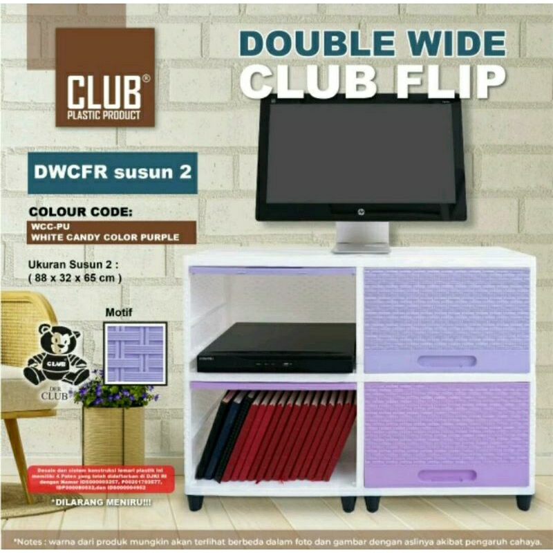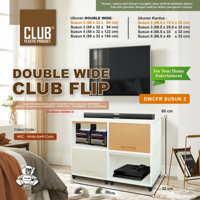 Double Wide Club Flip Susun 2 - Lemari Rak TV Monitor - Lemari Plastik Lebar Pintu Geser - Lemari Laci Plastik Minimalis