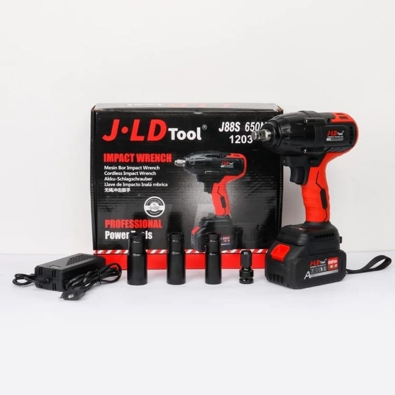 JLD Cordless Impact Wrench 88Vf J88S Brushless Torsi Besar JLD 650Nm 1 Baterai Pembuka Baut Mobil/Motor