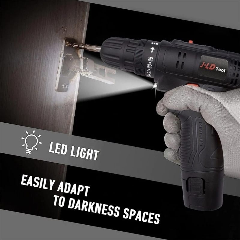 JLD 12Vf Mesin Bor Baterai Murah Berkualitas Bor Cas Jld Bor Case 2 Batre Fullset Portable 25+1 Cordless
