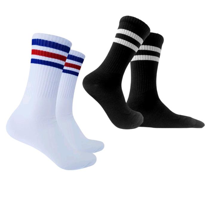 KAOS KAKI OLD SCHOOL/KAOS KAKI SPORT PRIA WANITA TEBAL PAKAIAN - PUTIH GARIS HITAM