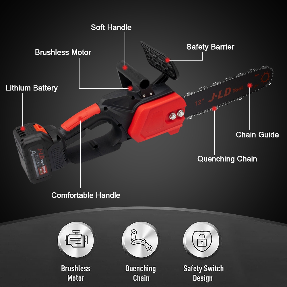 JLD 12Inch Cordless Chainsaw Gergaji Mesin Portable 88Vf Brushless Mesin Pemotong Kayu Chain Saw Original