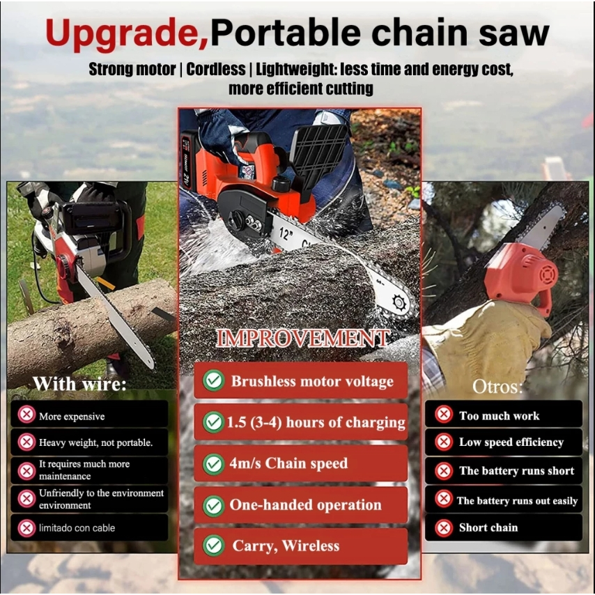 IRONHOOF 12 Inci Gergaji Kayu 588V Cordless Lithium Baterai Gergaji mesin chainsaws