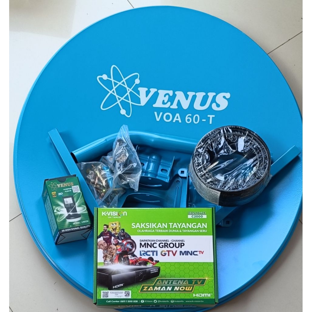 Antena Parabola Mini 60cm Venus+Kabel+LNBF+Receiver K-Vision C2000. Lengkap