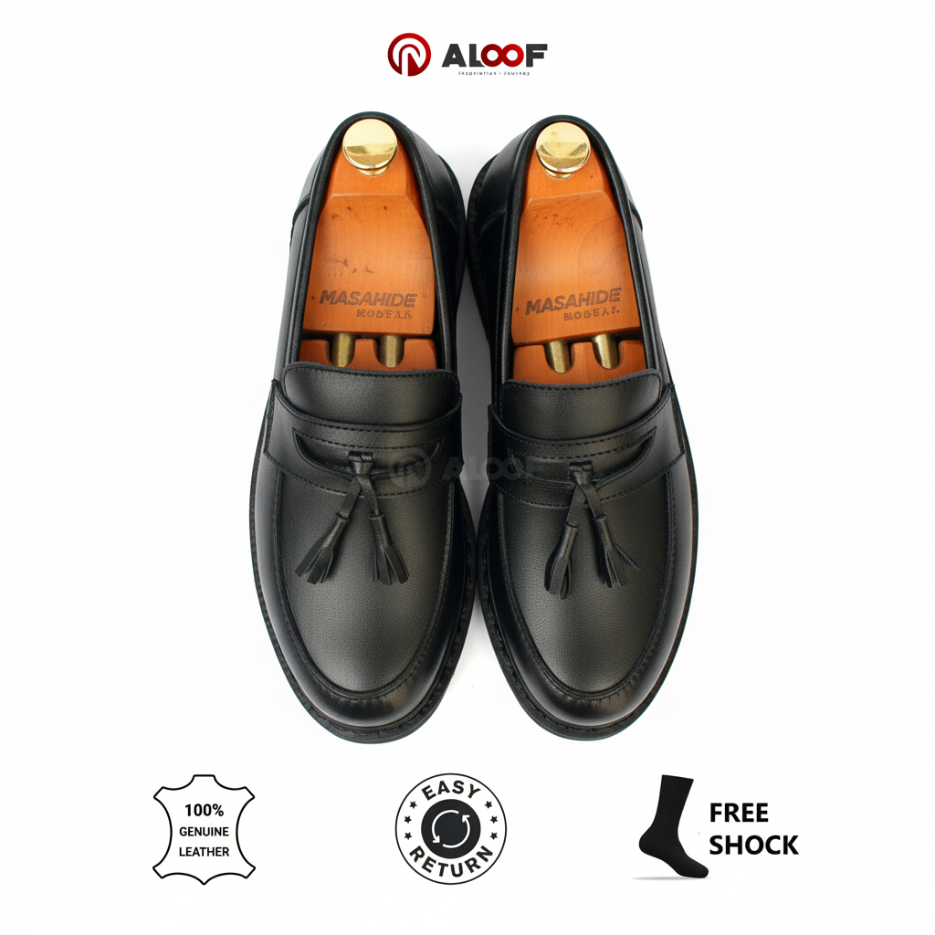 39-44 Aloof RINEH Hitam - Sepatu Loafers Tassel Pria Kulit Asli Original
