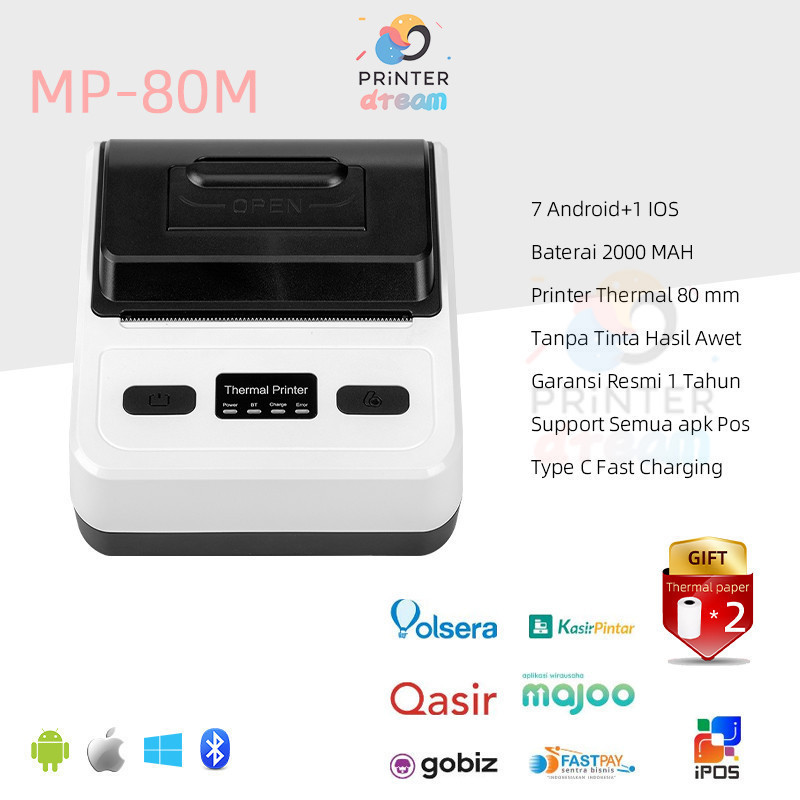 free paper2 𝗙𝗥𝗘𝗘POS 80mm Thermal Printer SUPPORT CASH DRAWER GOOJPRT 3"Inch Portable Bluetooth Receipt Printer SRS