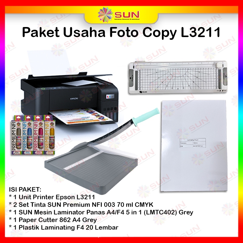 Paket Usaha Printer Fotokopi Epson L3210 / L3211 / L3250 / L3251 Tinta SUN - Laminating LMTC
