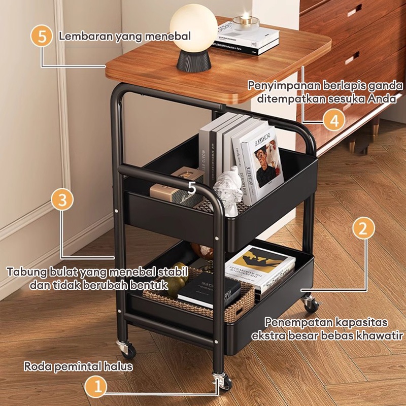 BEST Rak Troli Susun 3 Tingkat Rak Besi Susun Serbaguna Rak Snack Rak Aesthetic Rak Salon Trolley Dengan Roda