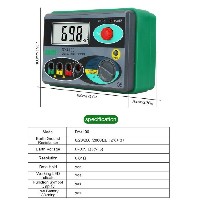 DUOYI DY4100 Ground Resistance Tester Digital Meggers Kilat Perlindungan Grounding Resistance Meter