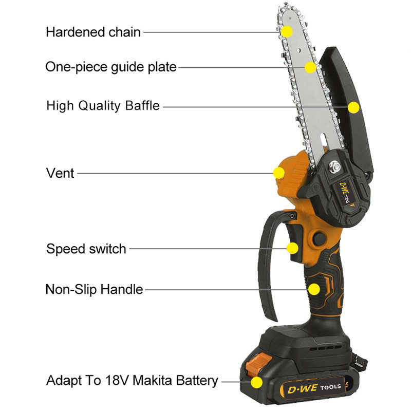 Mesin Chainsaw 6 Inch Cordless Chainsaw 598V Gergaji Baterai Gergaji Rantai Elektrik Mini 2 Baterai Gergaji Listrik