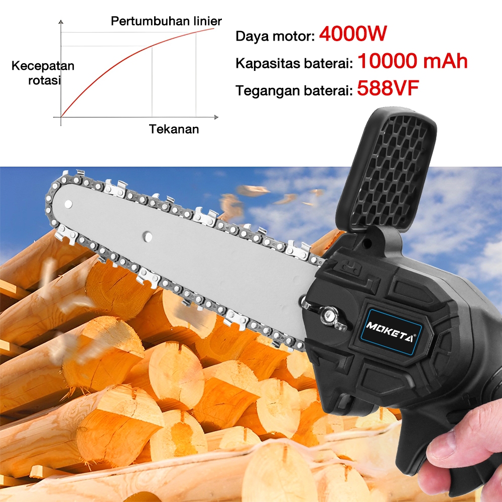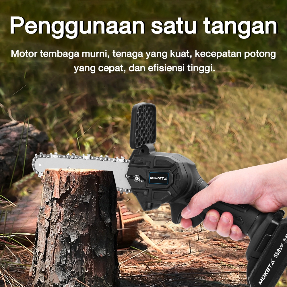 Chainsaw 6 inch Cordless Gergaji Pemotong Kayu Gergaji Listrik 2 Baterai Handheld Chain Saw Gergaji Mesin Mini berkebun,