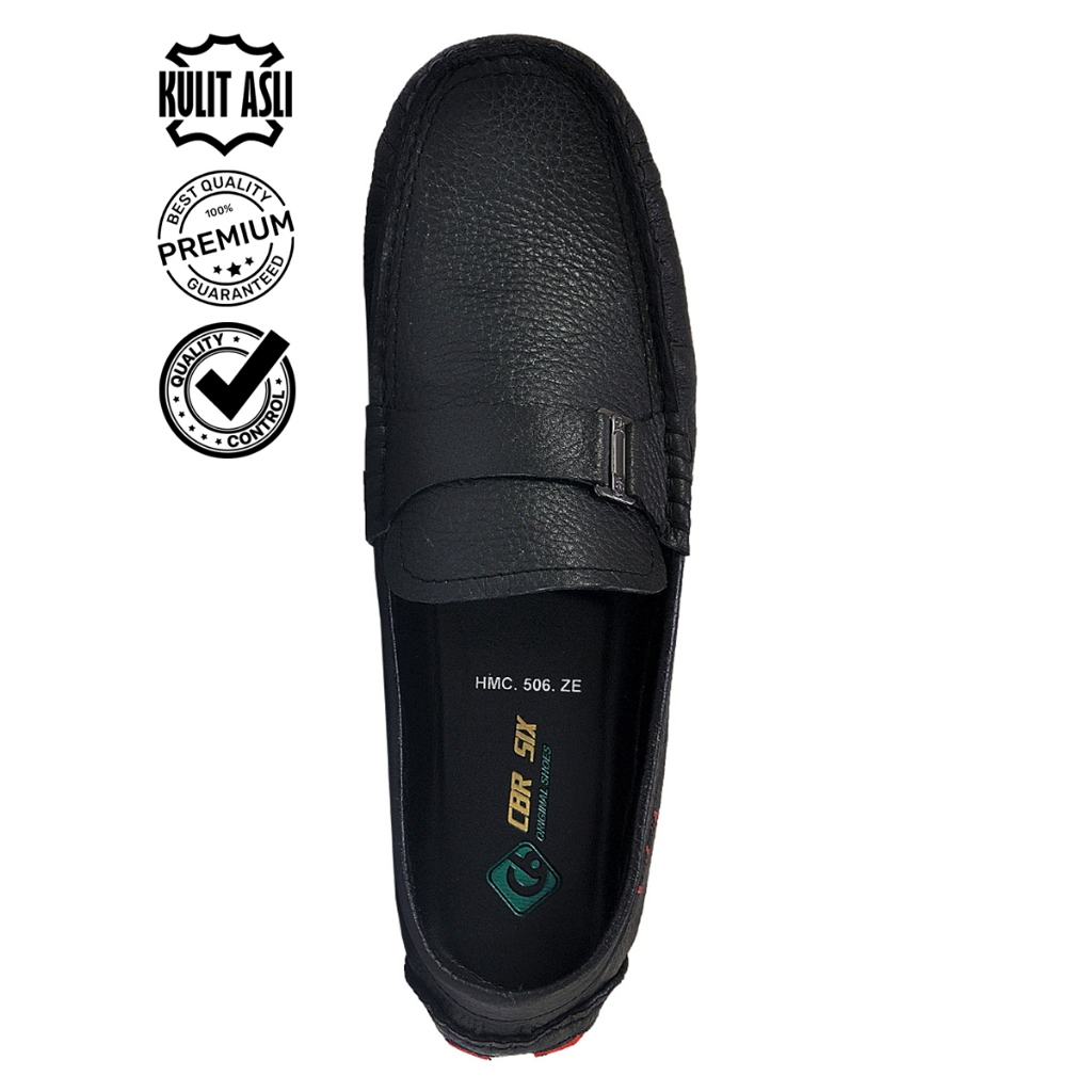CBR SIX / Sepatu kasual mokasin pria kulit hitam sol karet super lentur / Loafer slip-on / HMC 506