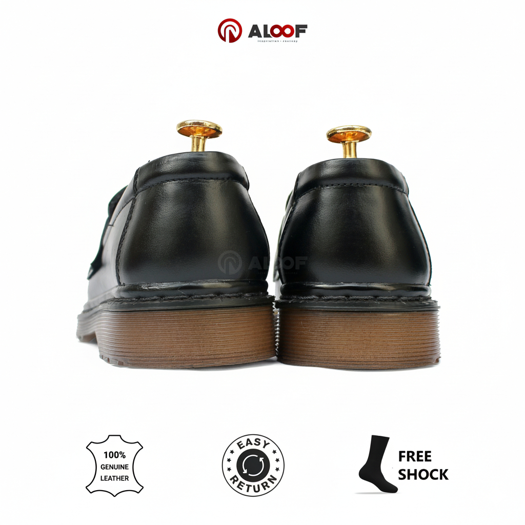 38-45 ALOOF PENNY HITAM - Sepatu Pria Penny Loafers Kulit Asli