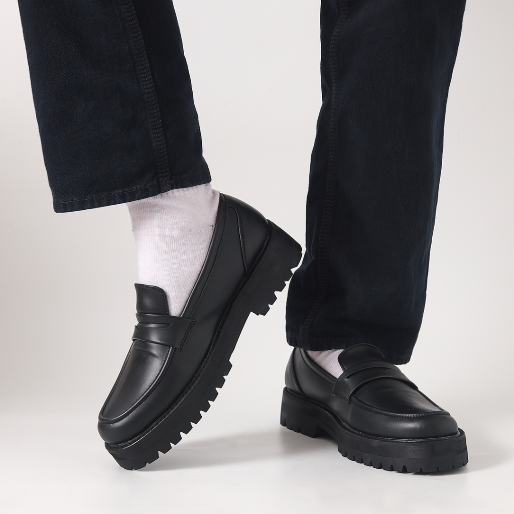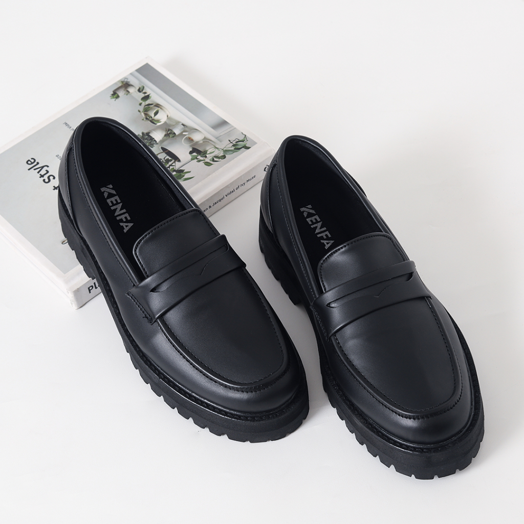 Kenfa - Mora Black Sepatu Pria Loafer Formal Kerja Kantor Kuliah Slip On Basic Hitam Tinggi Simple