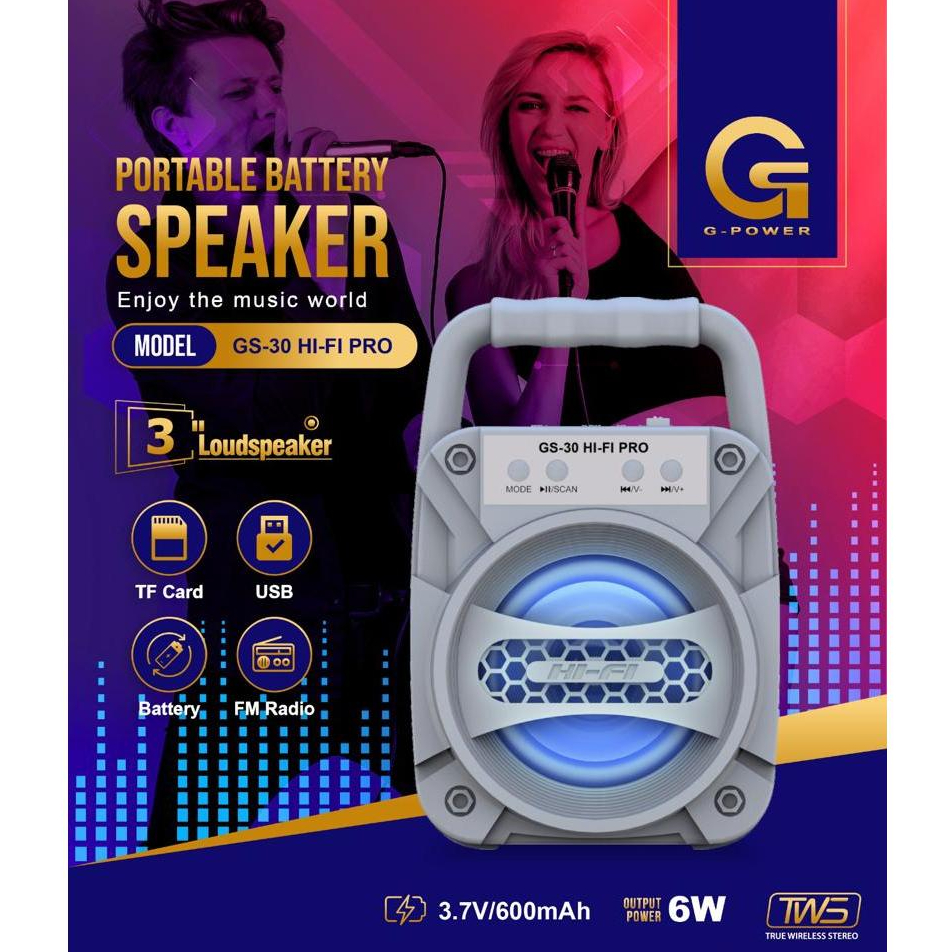G-POWER Speaker GS-30 Hifi Pro Speaker Bluetooth Portable Mini 3 inch Garansi Resmi
