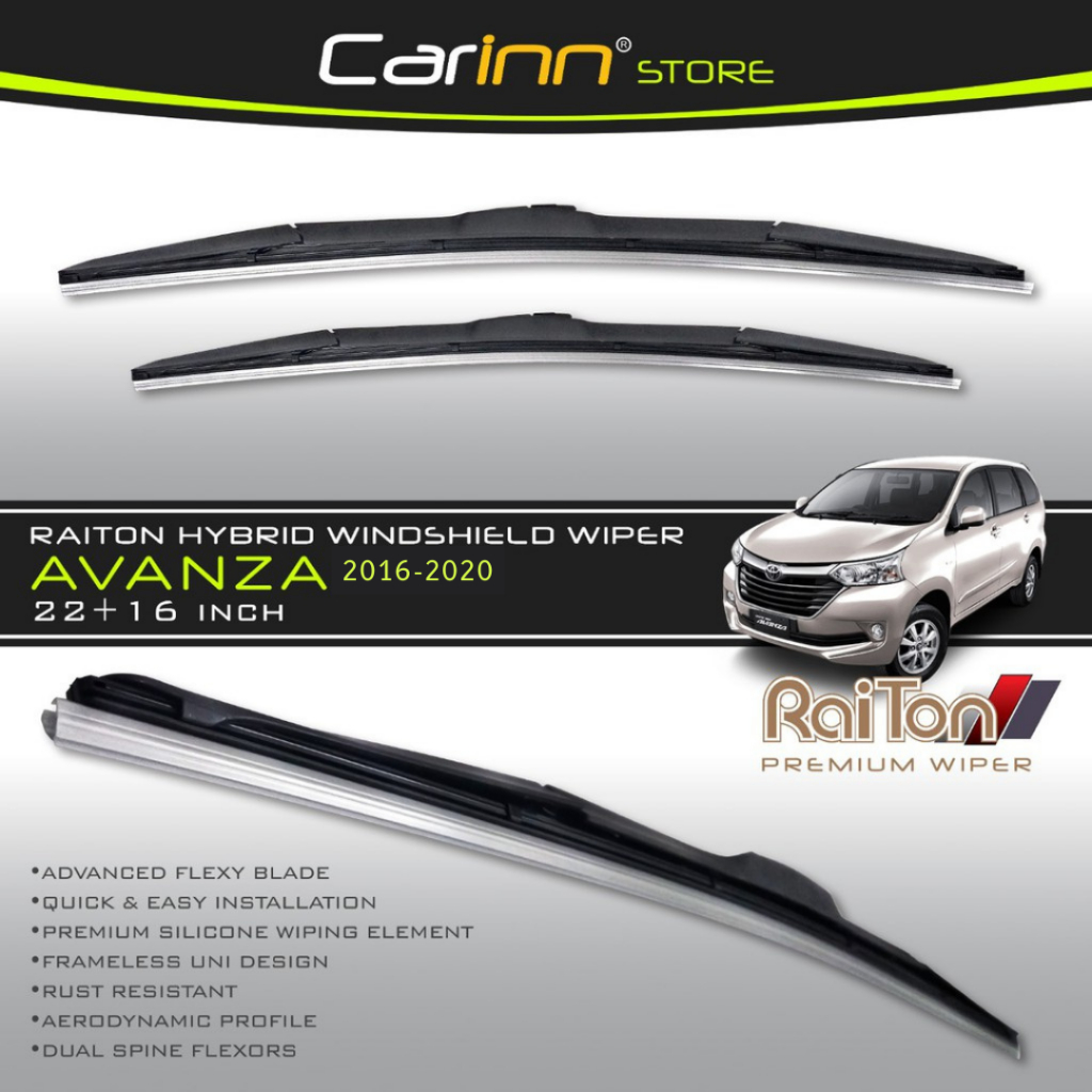 Raiton Sepasang Wiper Hybrid Kaca Depan Mobil Avanza/Xenia 2016-2020 22" & 16" -2 Pcs Original