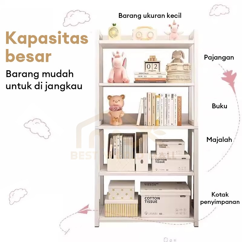 Rak Buku Minimalis Rak Susun Besi Aesthetic Rak Pajangan R Tamu Rak Rumah Multifungsi Rak Anak 3/4/5Layers