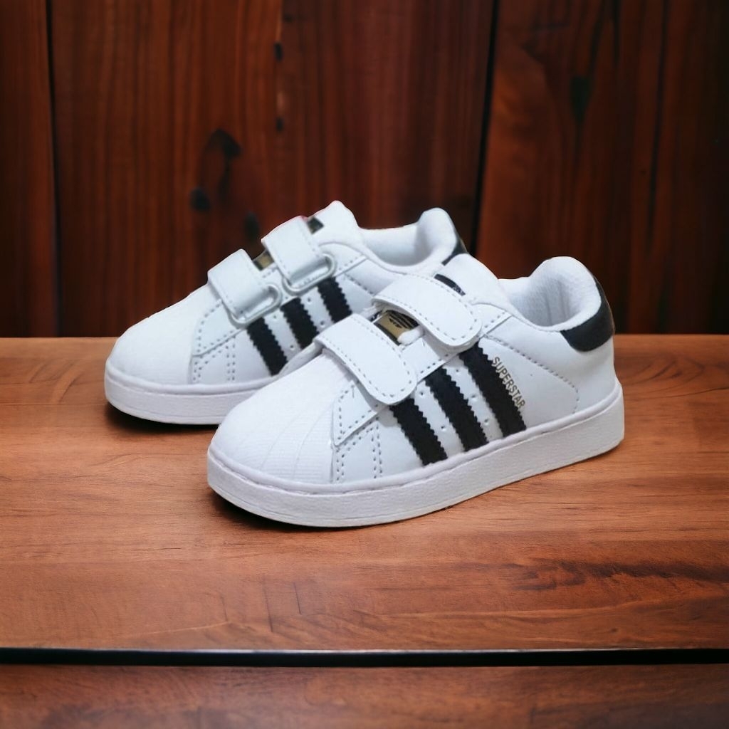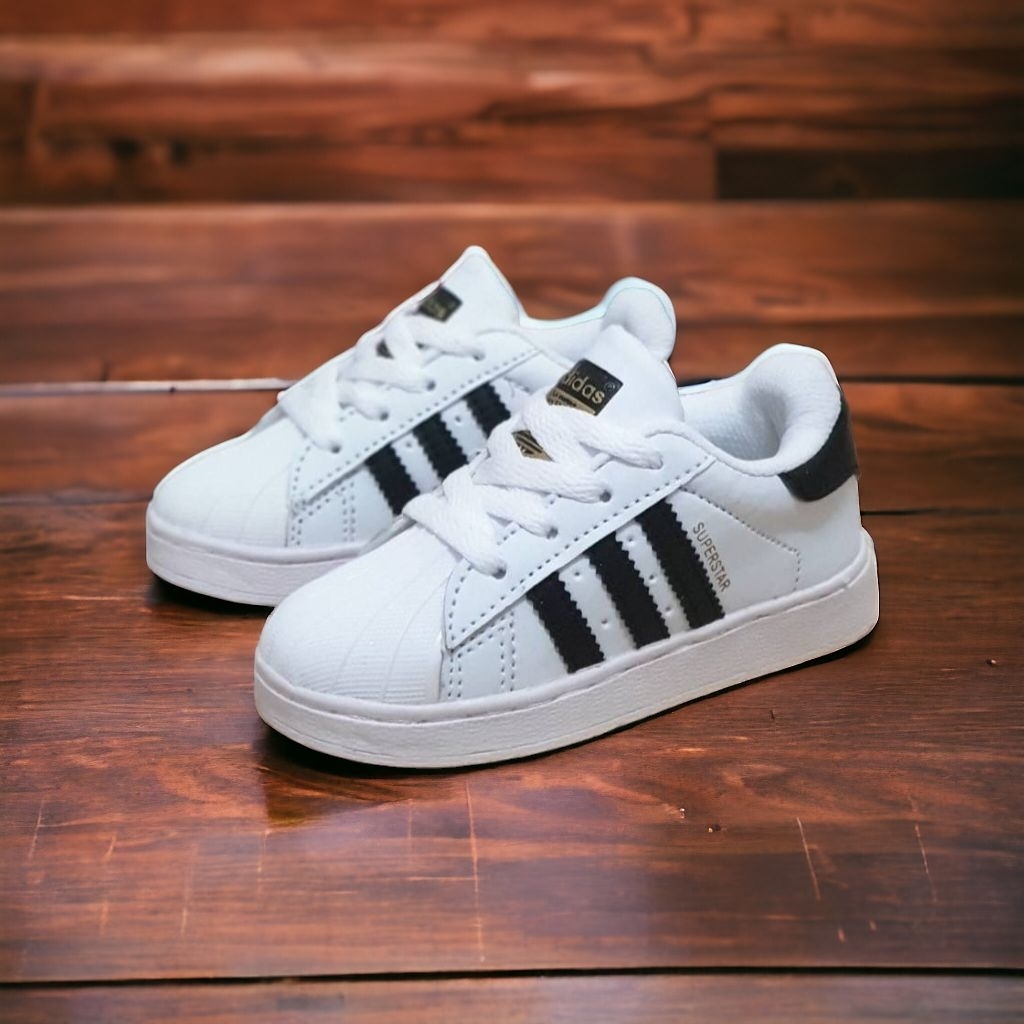 Sepatu Anak Laki Laki dan Perempuan Superstar Hitam Lis Putih Kids