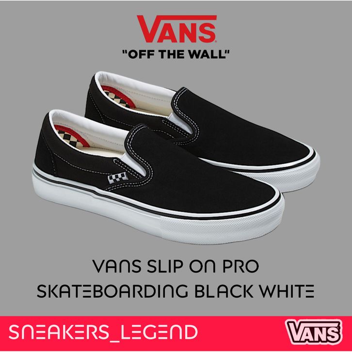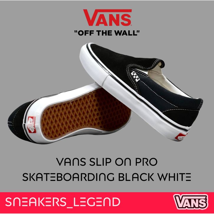 Vans Slip On Pro Skaterboarding Black White Original 100 Free Paperbag Stiker Bnib Ori Tembus