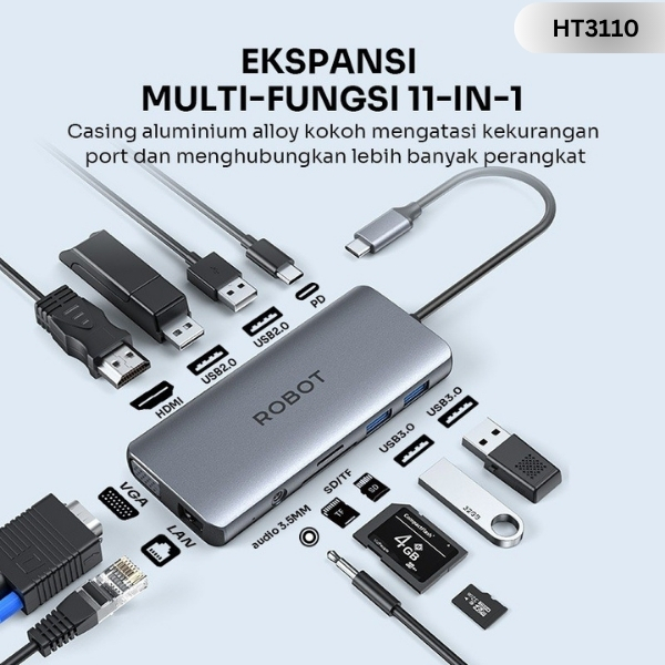 ROBOT USB Hub Converter 11 in 1 Type-C to HDMI USB 3.0 TF Card HT350 Adapter Portable Untuk Laptop MacBook ke TV Origina