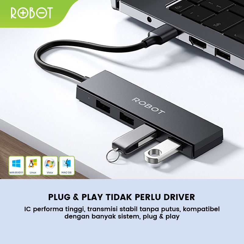 ROBOT USB HUB Transmisi 480Mbps H130-80 4 Ports Portable Multi Function Kompatibel WINDOWS LINUX VISTA MAC OS Original G