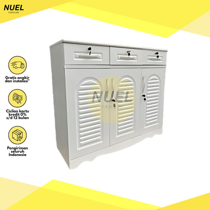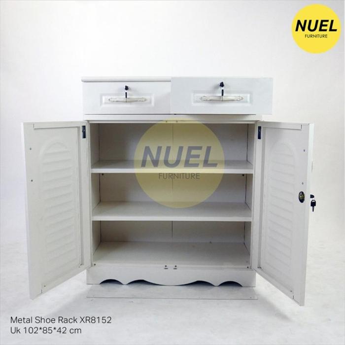 NUEL RAK LEMARI TEMPAT SEPATU SANDAL BAHAN BESI 3 PINTU SWING XR8153 - 60 WHITE, NO BUBBLE