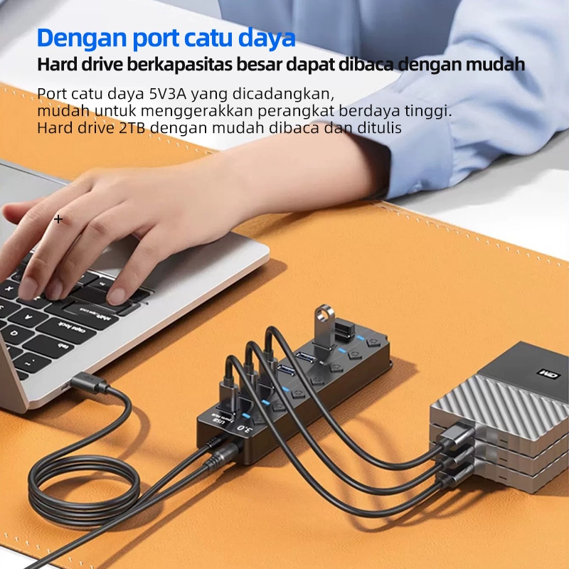 OLYPS USB Hub 4 Port 7 Port Type-C Adapter Up to 5Gbps With Individual LED Switch for Macbook/Laptop