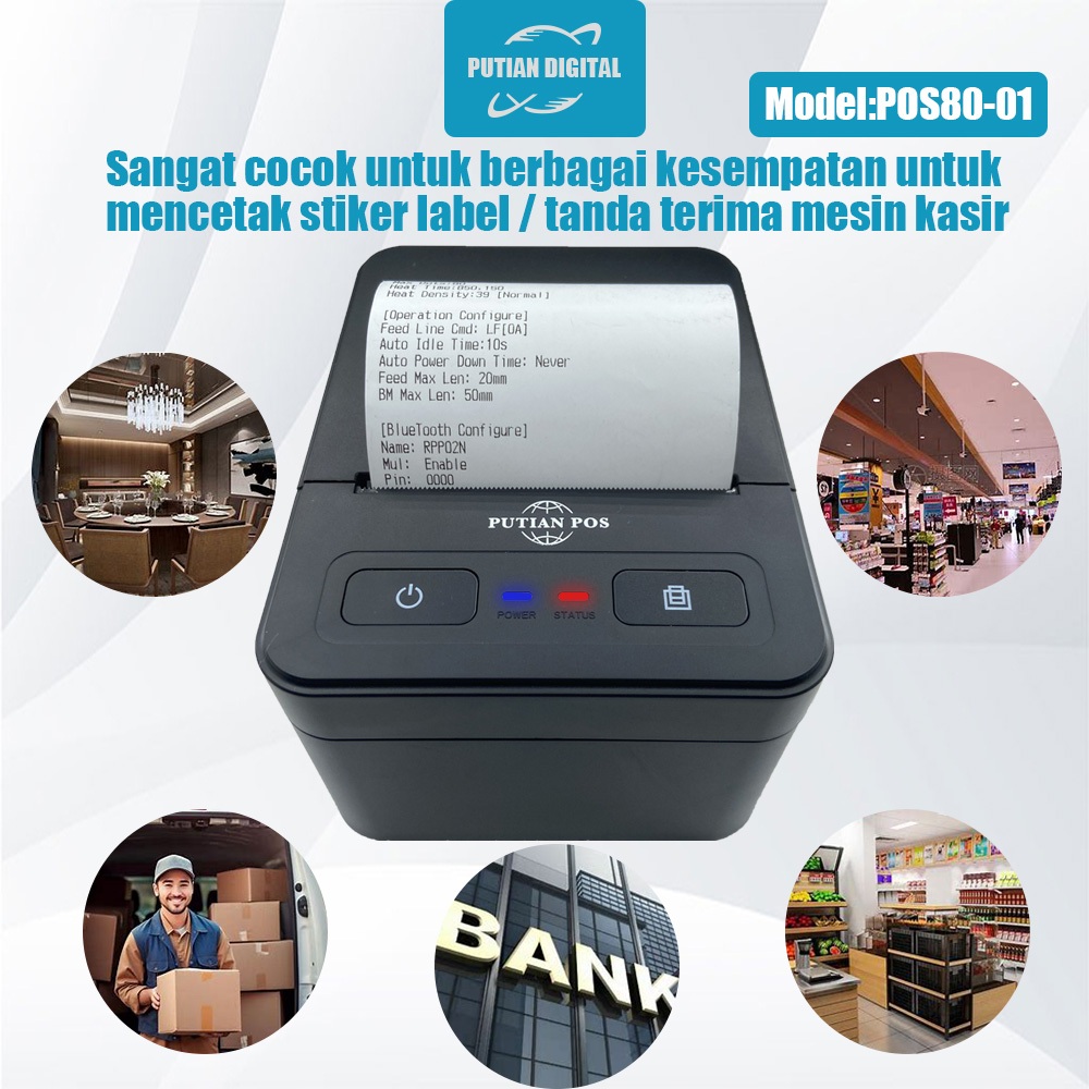 PUTIAN POS Desktop Bluetooth Thermal Printer POS80-01 80MM (Continuous Label Sticker + Bill) 2-in-1