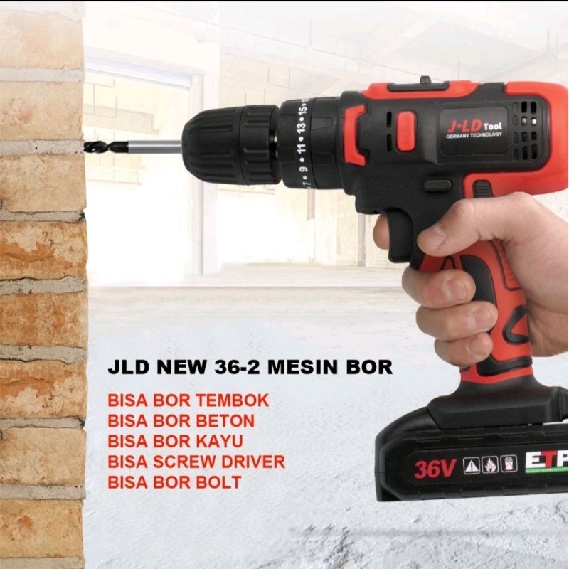 Bor Baterai JLD 36VF 2 Baterai Set Koper 35NM