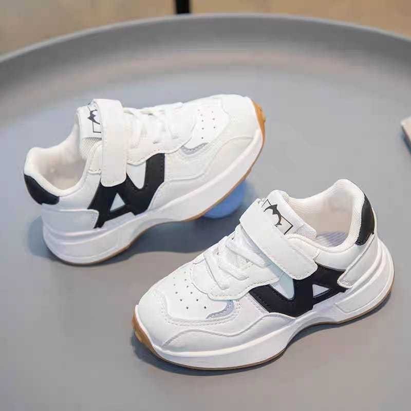 Sepatu Sneakers Anak Laki Casual Korean Style Import Hitam Abu Putih Sneaker Korea Anak Cowok Velcro