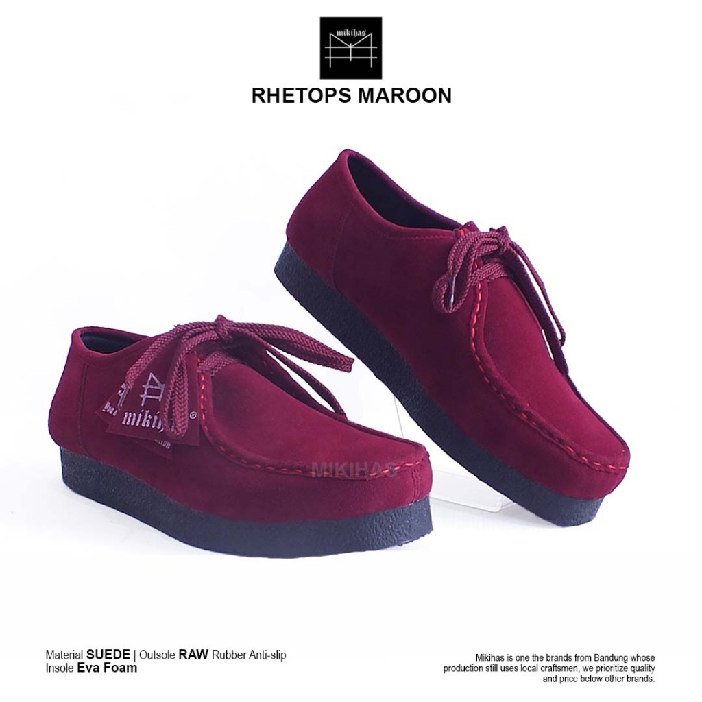 Mikihas - Sepatu Casual Pria Sneakers Kulit Suede Maroon Wallabee Rhetops
