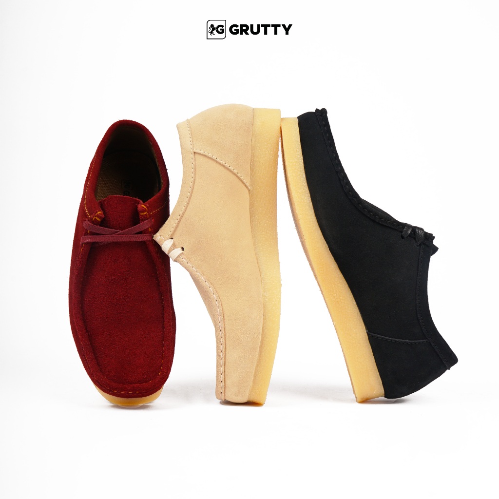 Grutty Chadwick Clarks Kulit Suede Pria Sepatu Formal Casual-Cream HItam Maroon