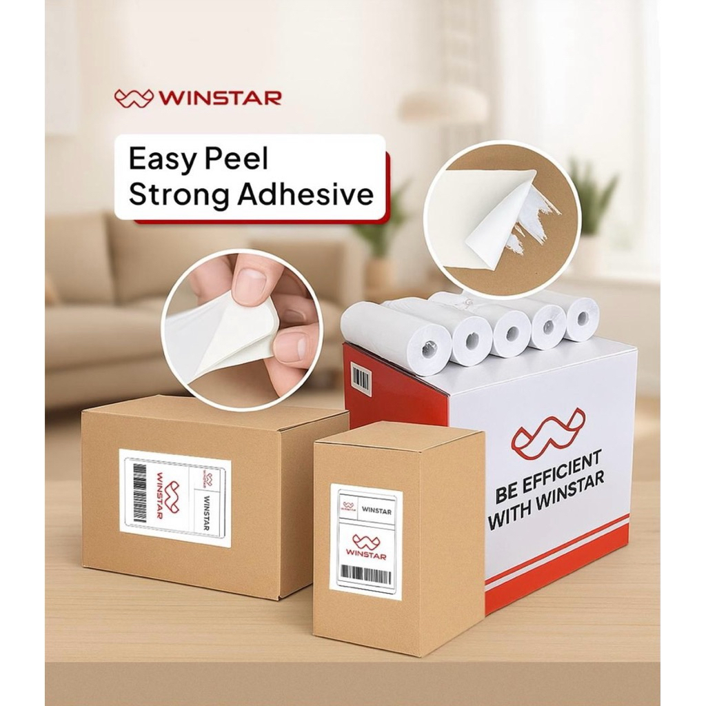 (1 DUS/ISI 20 PCS) WINSTAR Thermal Label ROLL LIPAT / Thermal Sticker alas kertas resi online shop 100x150mm isi 500 lembar
