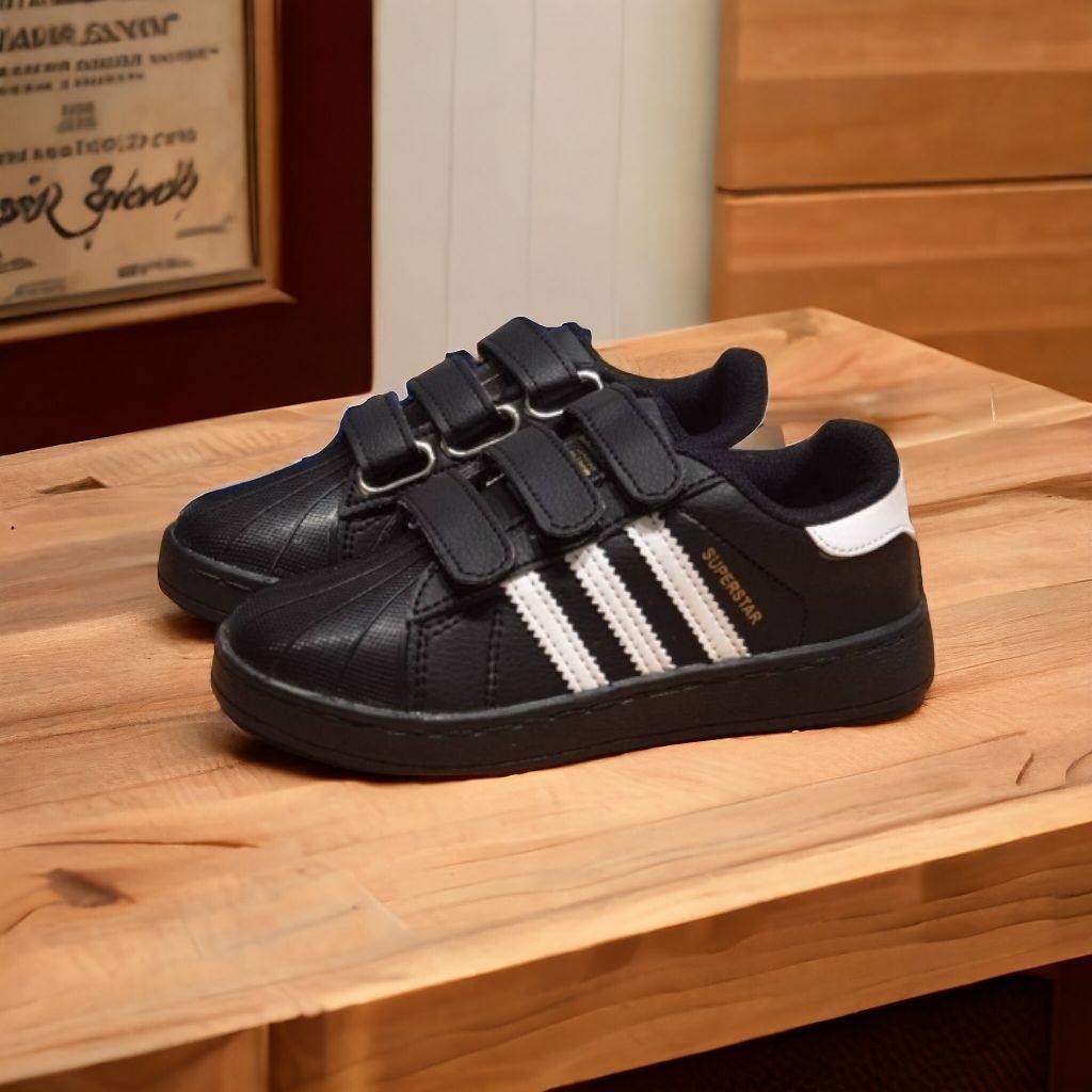 Sepatu Anak Laki Laki dan Perempuan Superstar Hitam Lis Putih Kids