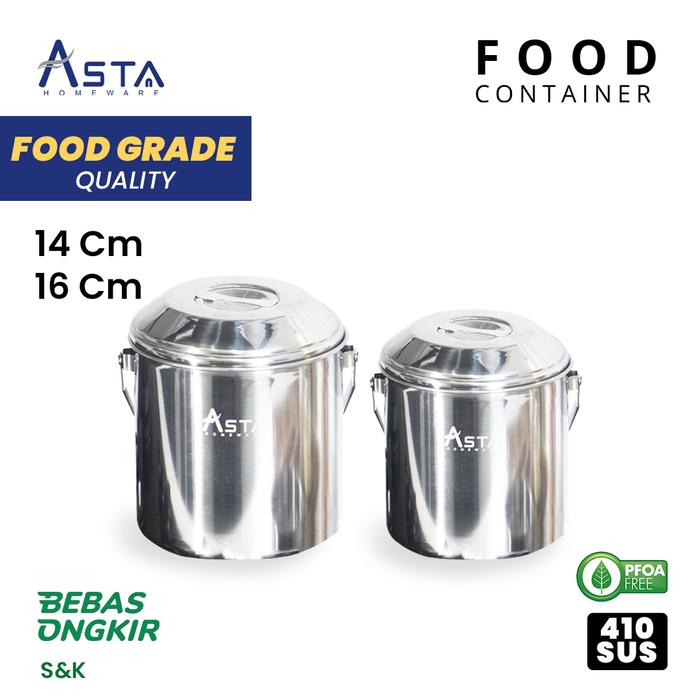RANTANG TUNGGAL WADAH STAINLESS STEEL TEBAL / RANTANG SOTO - FOOD CONTAINER KITCHENWARE ASTA - 16CM