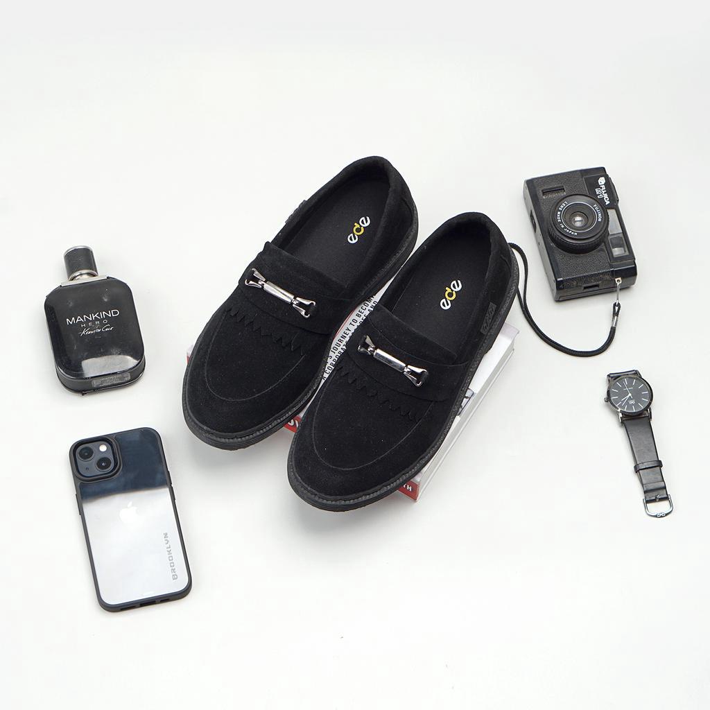 Edefootwear JICKO - Sepatu Slip on Loafers Tassel Casual Kulit Suede Hitam Pria