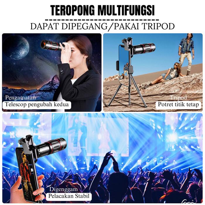 APEXEL 18X 28X LENSA KAMERA ZOOM LENSA TELEZOOM HP UNIVERSAL LENSA HP HD DENGAN TRIPOD UNTUK KONSER - 18XLENSA+KLIP