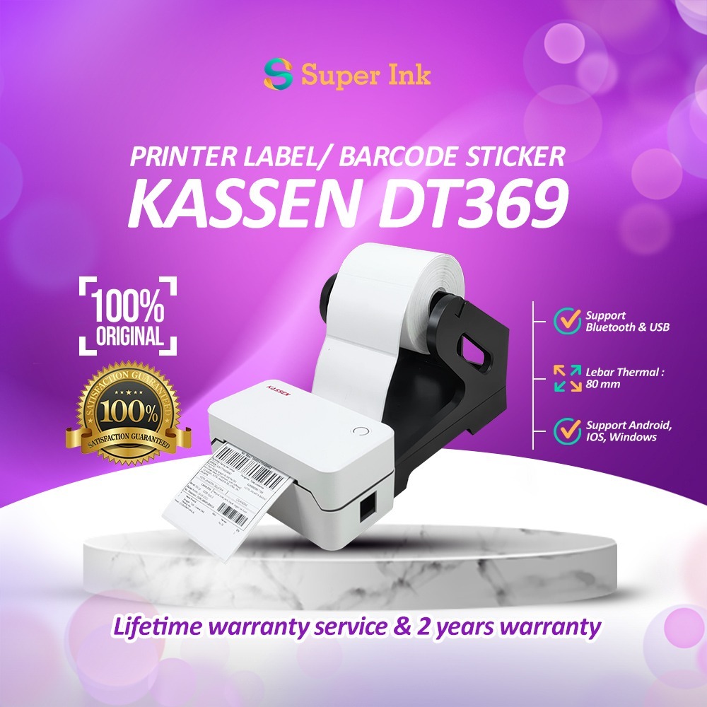 Printer Bluetooth KASSEN DT-369 Printer Label Thermal USB Bluetooth 80 mm cocok untuk 78x100mm