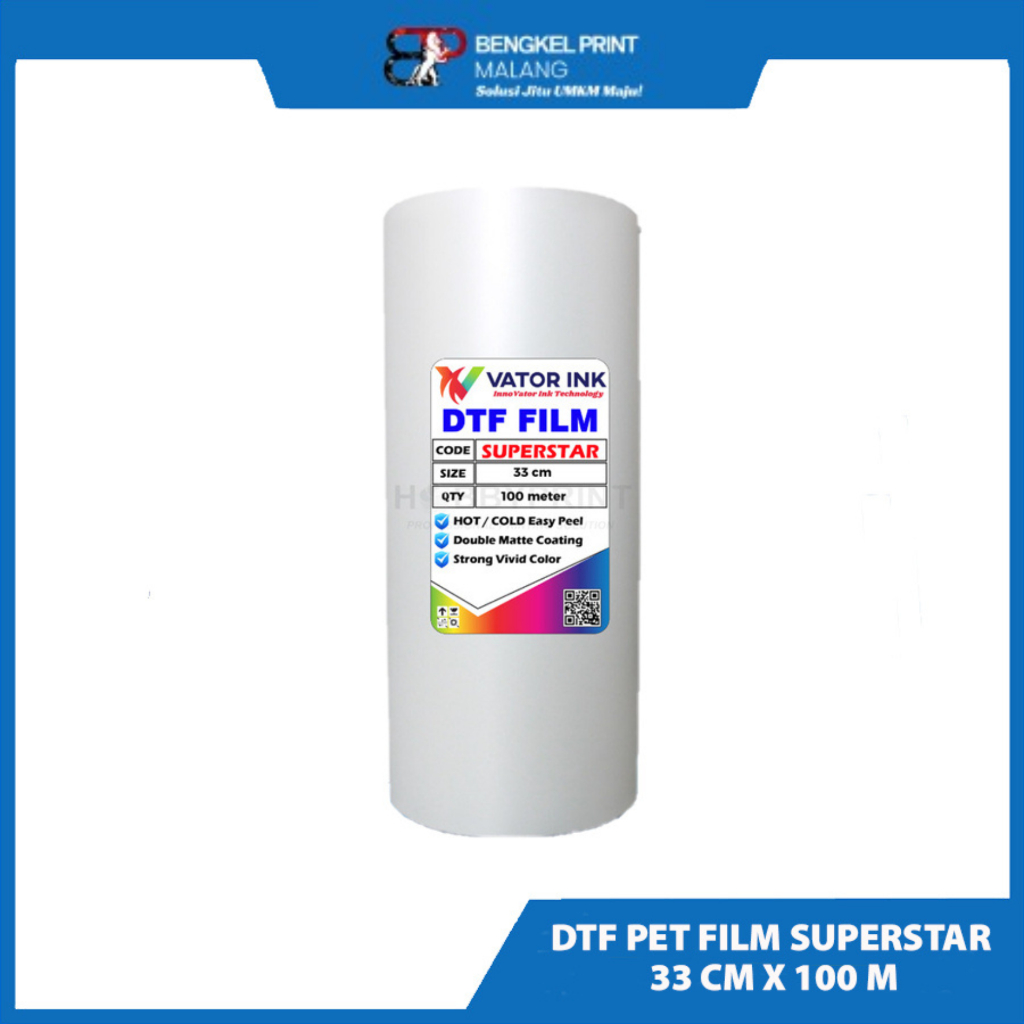 PET FILM DTF A3 VATOR SUPERSTAR 33cm x 100m Hot Cold Peel Sablon DTF Tinta DTF