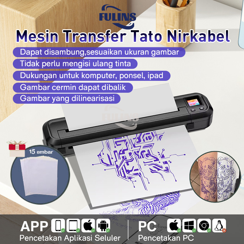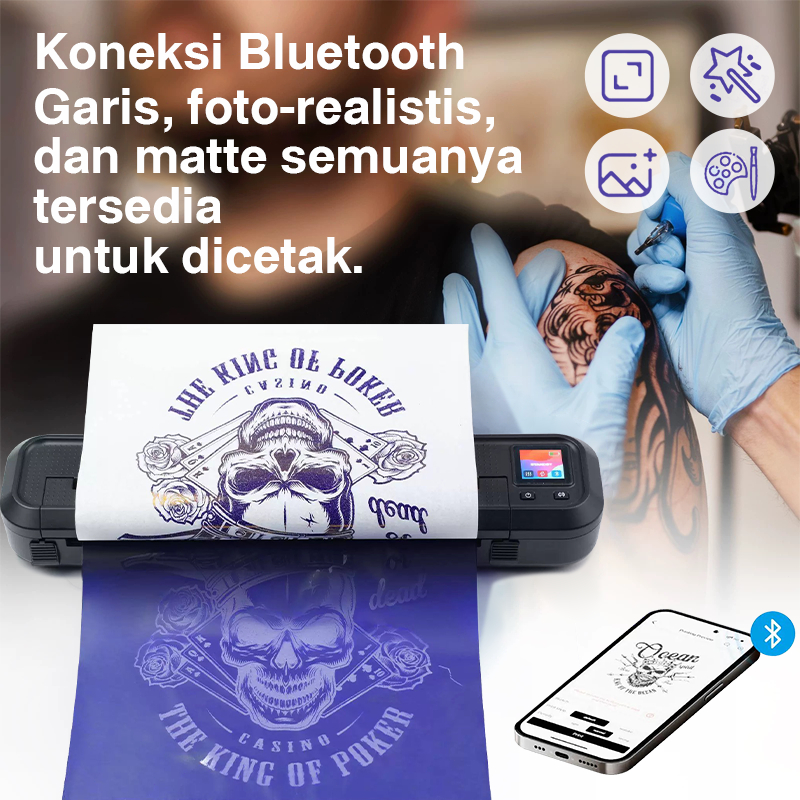 Original Printer Tatto/Mesin Tato Transfer/Alat Printer Mini/USB&Printer Bluetooth/Transfer Termal/Warna Hitam Mesin