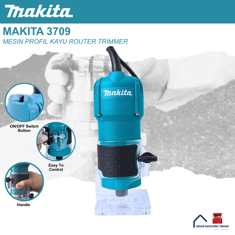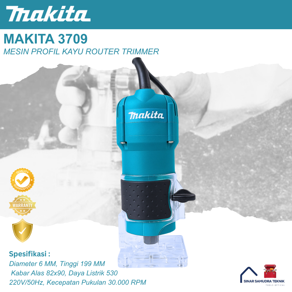Mesin Trimmer/Profil Makita 3709 - Mesin Kayu 6mm, Daya Listrik 530 Watt