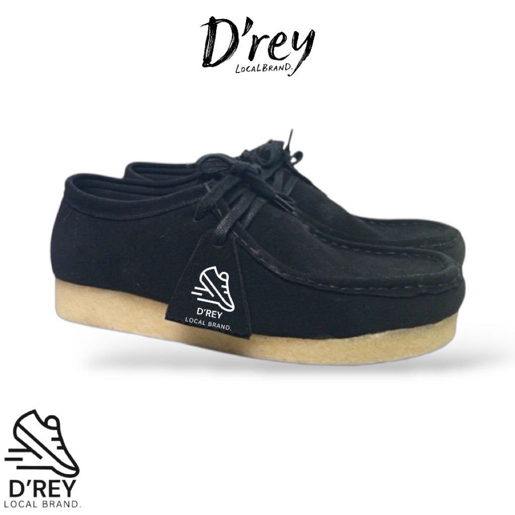 D’REY Sepatu Clark Casual Pria Kulit Suede Chungky Wallabee Comby Black Sneakers