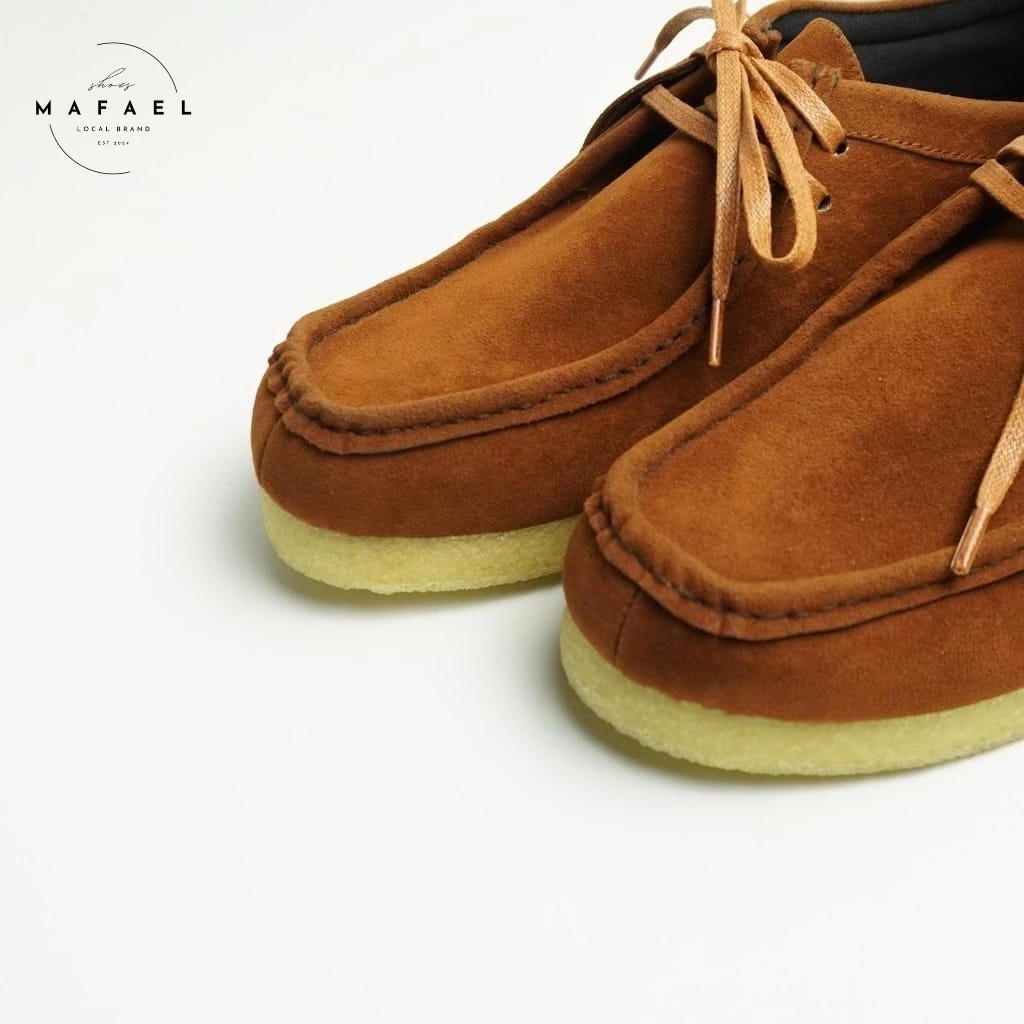 Sepatu Clark Pria Kasual Spatu Wallabee Chunky Tan Natural Leather Suede